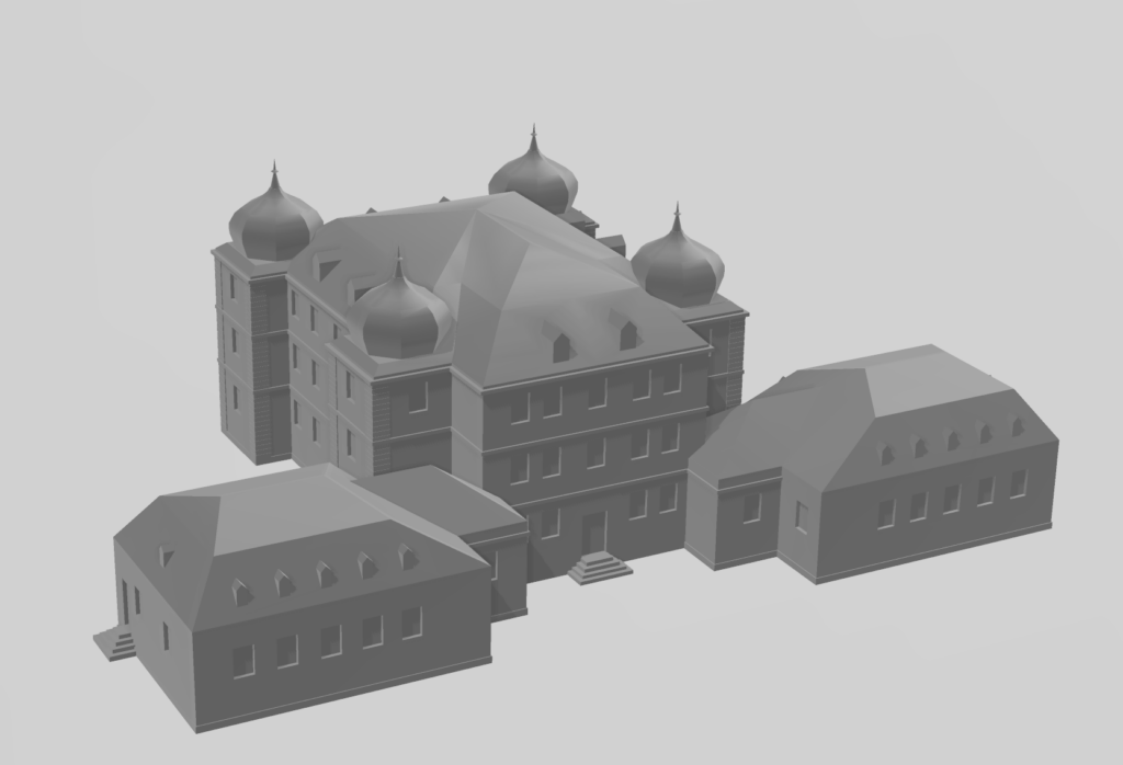 The model shows the main building of the Schloss-Schule Ilvesheim